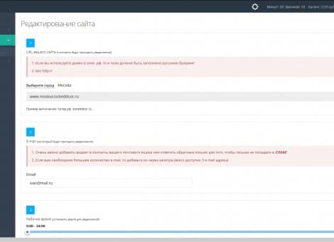 1. Выберете раздел "Услуги" 2. Раздел "Сайты", далее добавить "Сайт", после чего появятся "Настройки". Нажмите "Настройки". 3. Введите все данные которые требуются для Вашего будущего сайта: выберете Ваш город, Е-mail, рабочее время, адрес, телефон, Яндекс. Метрика и Google. Аналитикс, часовой пояс.